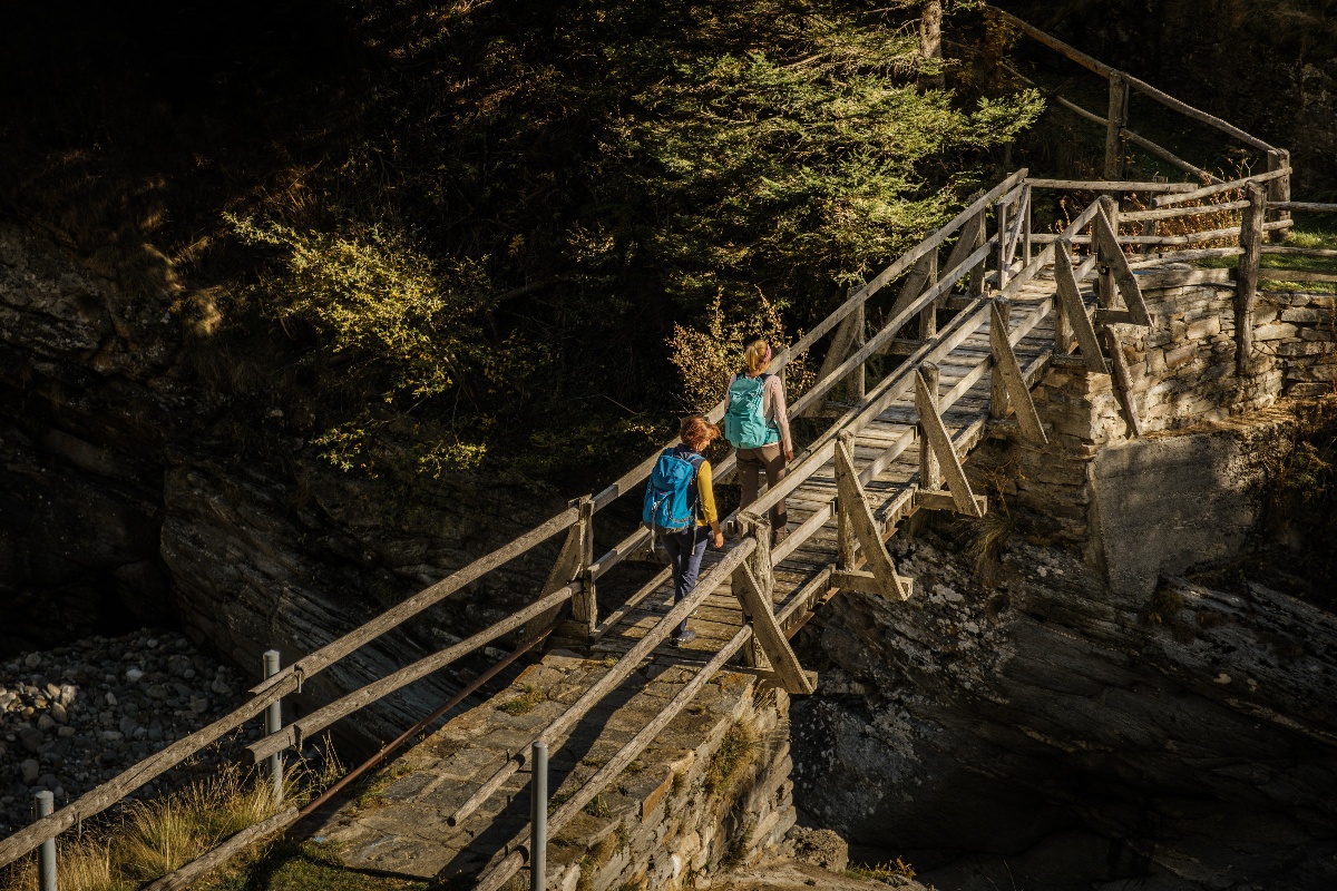 Experience the golden fall in Valais on a hike through the Hittuwald forest along the Suone Chrummbacheri. The glowing larches and the gentle babbling of the Suone offer a varied nature experience. Afterwards, the charming Simplon village awaits you with its picturesque stone slab roofs and inviting restaurants serving regional specialties. Download the Hittuwald brochure now and find out more about this ancient larch forest.